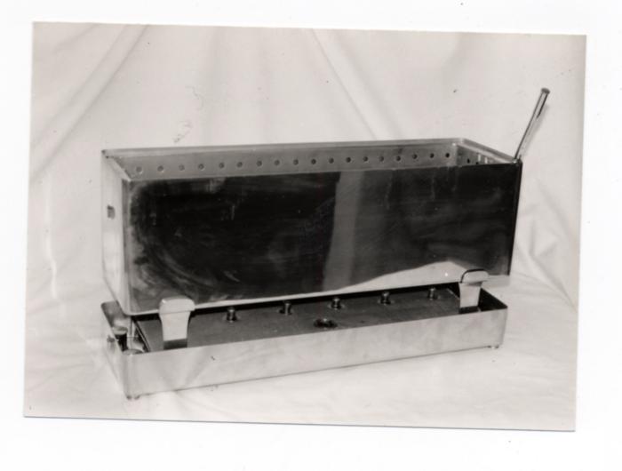 Grand stérilisateur à alcool du Dr F. Levassort, avec boîtier, paniers, poignées et thermomètre.