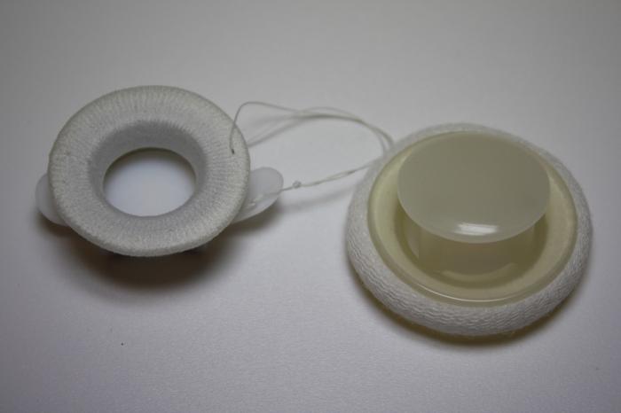 Coffret avec plusieurs valves de taille différente (taille 1 à taille 4) provenant de l’Hôpital Hammersmith de Londres, 2 jauges de la marque Beall pour mesurer la taille de la valve mitrale, 3 jauges d’une marque non identifiée, 2 systèmes de résection latérale.