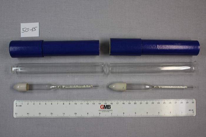 2 uromètres, modèle du Dr Ulzimann 15°Celsius, sans thermomètre, 1,000 - 1,060.