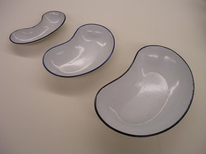 Bassin réniforme pour réfection pansements et usages divers. Fabricant: L’objet porte le label d’une marque, il s’agit d’un caducée au-dessus duquel on lit le chiffre 43.
