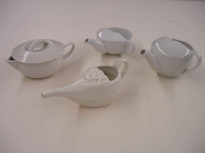 Tasse à bec dit “canard” avec couvercle pour permettre au patient de boire couché.