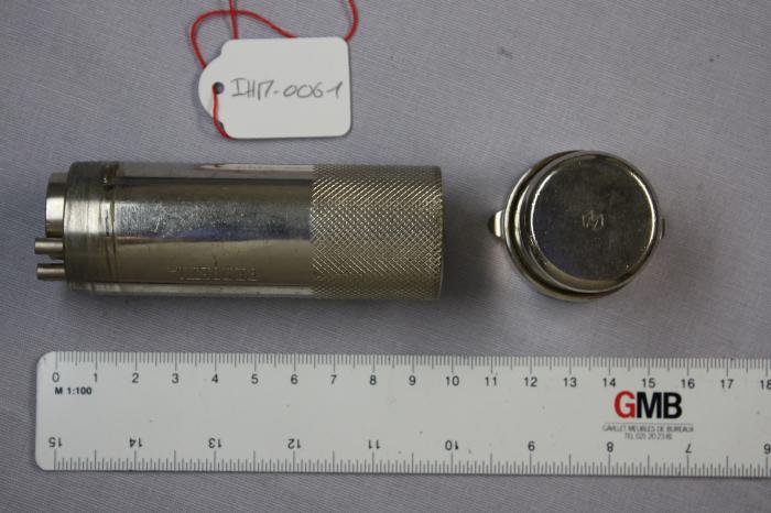 Etui pour seringue vide. Inscription “PERPETUA”