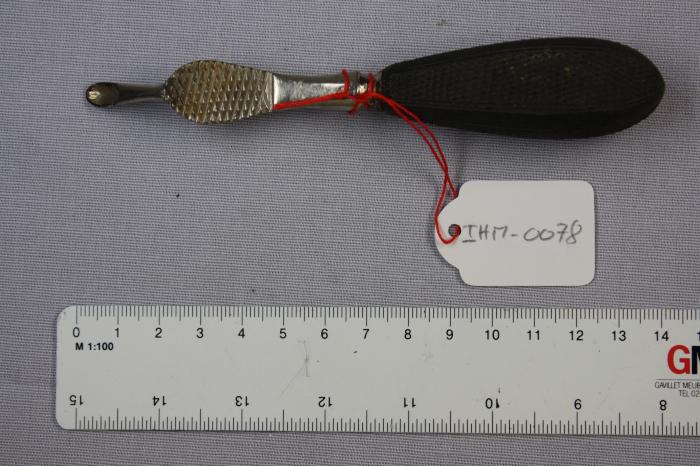 Elévateur pour racines en métal. Appui doigt. Tête à curette.