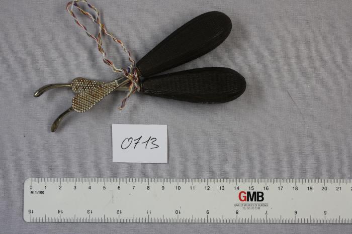 2 élévateurs pour racines en métal. Appui doigt. Tête inclinée à curette.