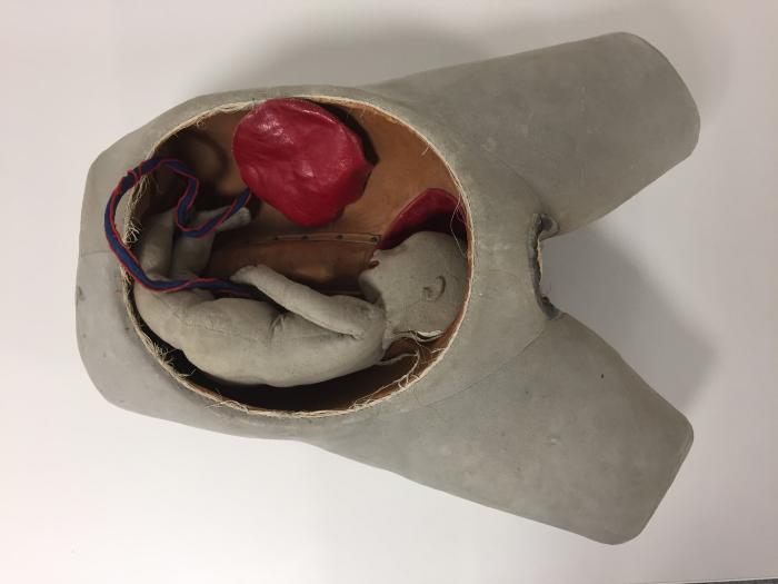Modèle anatomique pelvien de femme destiné à la démonstration de l'art des accouchements.
