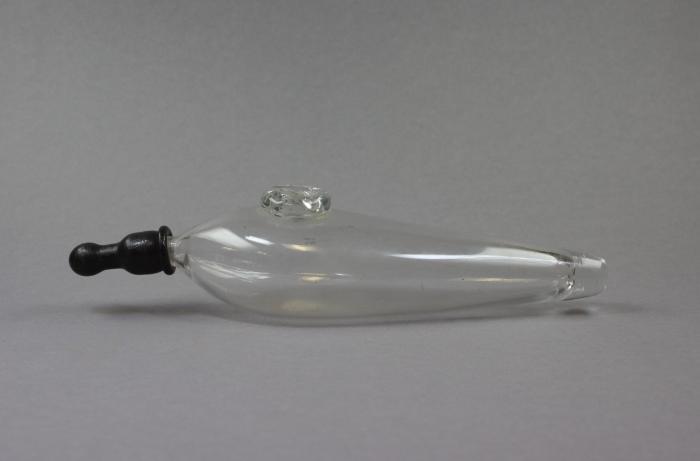 Biberon-limande en verre soufflé avec tétine en caoutchouc.