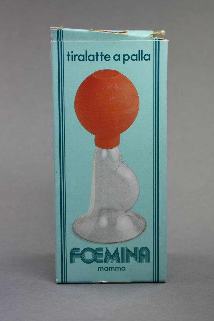 Tire-lait en verre avec pompe en caoutchouc. Inscription: burnet 2 Carton d'emballage avec illustration et mode d'emploi.