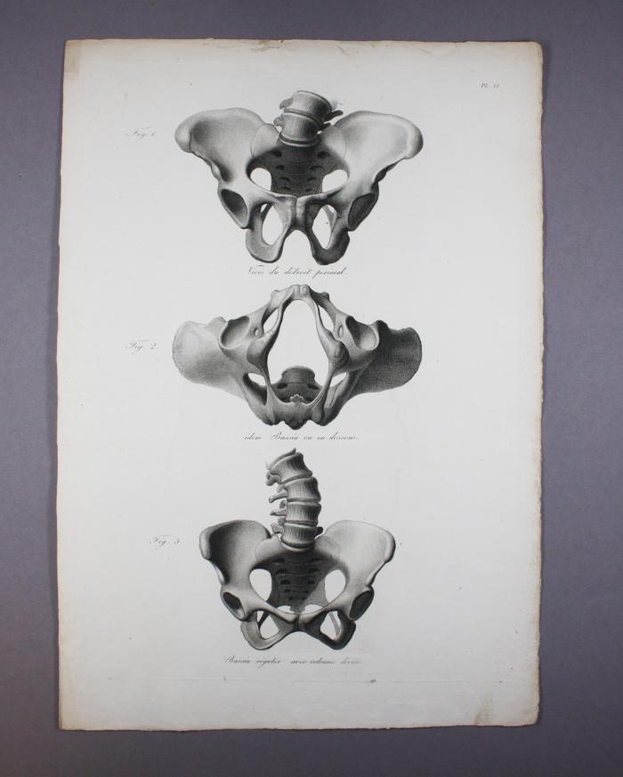Lot de gravures tirées des nouvelles démonstrations d'accouchements par Jacques Pierre Maygrier. Livraisons 1 à 11 (manque la livraison 10), planches et textes dans des chemises bleues, indiquant le numéro de livraison et les différentes informations sur les planches.