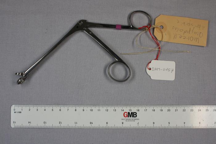 Pince pour morcellement des amygdales (d’après l’étiquette). Dans lot “Prof. Terrier”