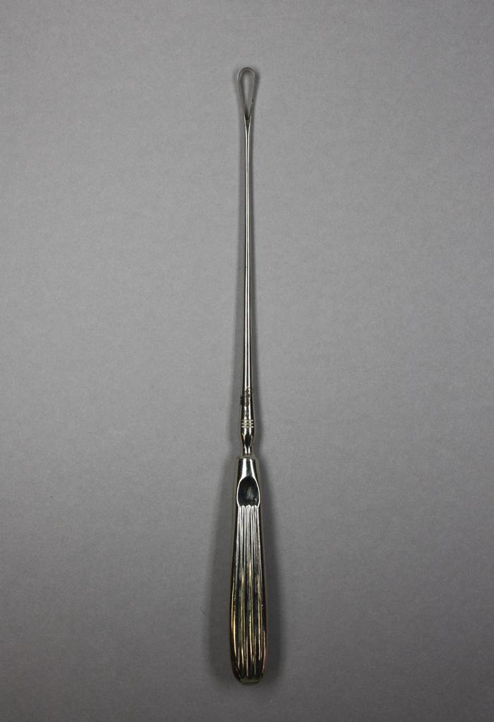 Instrument métallique avec embout creux et tranchant. Porte le numéro 2 et la marque Klopfer