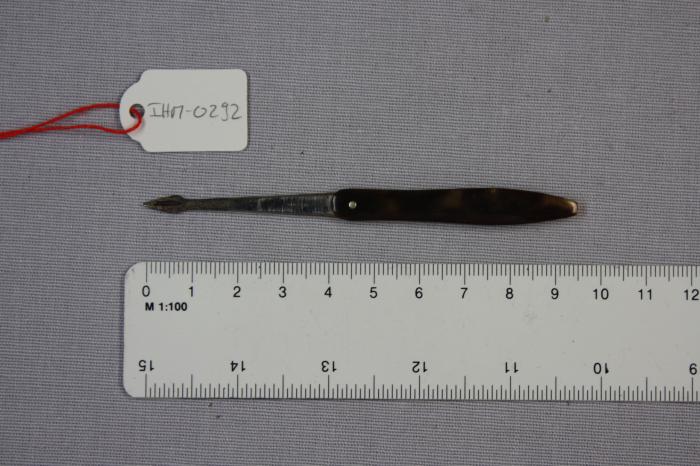 Aiguille à vacciner (selon catalogue Schaerer) avec protection en écaille de tortue. (cf. Bordereau de versement, 3 décembre 2008)
