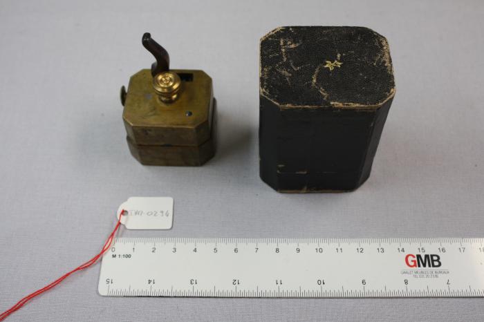 Scarificateur (en laiton?) à 12 lames dans étui. (cf. Bordereau de versement, 3 décembre 2008)