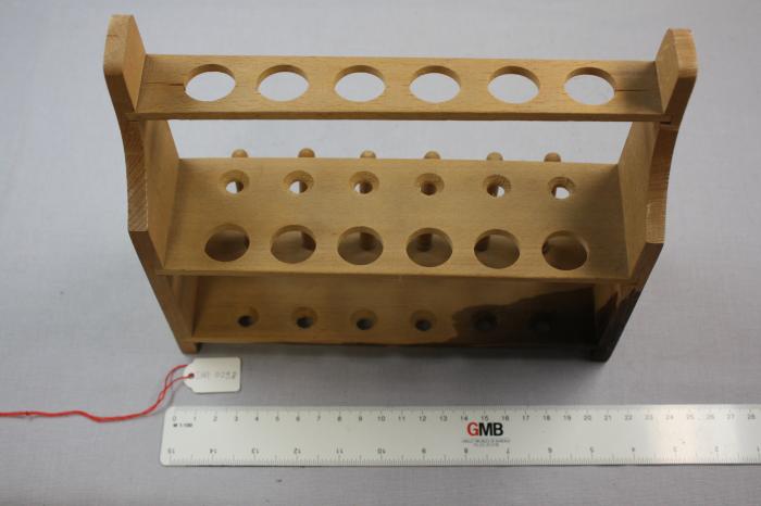 Étagère à éprouvettes en bois à 2 étages avec 12 supports et 6 tiges à égoutter.