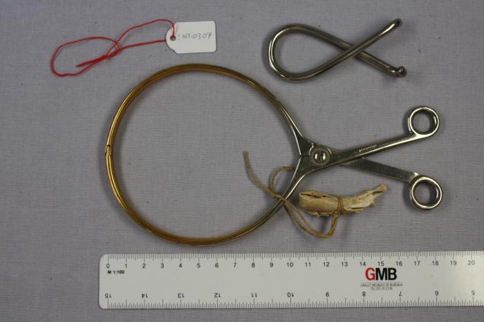 Manche ciseau, embout rond. Avec pièce en métal faisant une boucle.