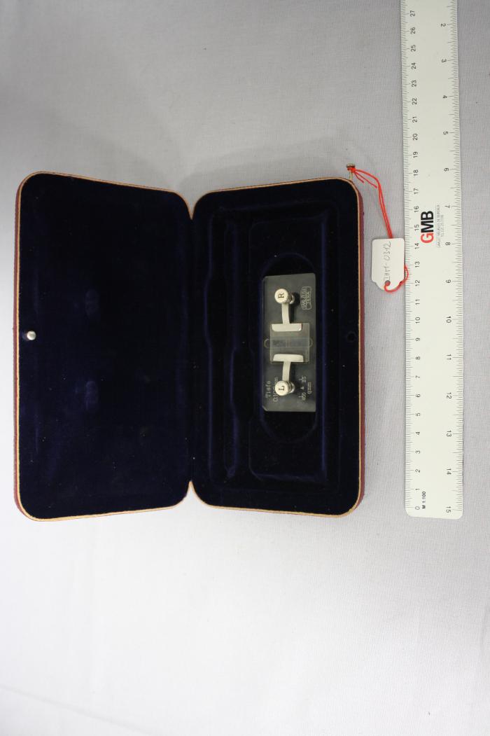 Appareil à compter les globules (?) dans étui. Incomplet. Inscription sur le couvercle “Blutkörperzählapparat nach Bürker”
