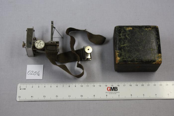 Sphygmonamomètre. Inscription: “Dr. Dudgeons. Sphygmograph. J. Ganter Maker. 12 Crauford Street. London. W. No 139” La sphygmologie (du grec spygmos, le battement) figure parmi les plus anciens modes de diagnostic dans toutes les cultures, aussi bien égyptienne, grecque, arabe, indienne et chinoise qu’occidentale. Le pouls est non seulement considéré comme signe évident de vie, mais encore comme un indicateur précieux de maladie. Les premiers appareils enregistreurs de pouls sont introduits par Karl von Vierordt (1853) et Etienne-Jules Marey (1859) Lourds et encombrants, ils sont perfectionnés plusieurs fois jusqu’en 1881, année où le médecin homéopathe anglais Robert Ellis Dudgeon (1820-1904), conçoit un appareil sensible et compact, qui se fixe facilement au poignet par un lacet. L’instrument est composé d’une série de leviers amplifiant les pulsations de l’artère radiale et les transmettant à une aiguille grattant un papier fumé de 15 cm x 2,5 cm tiré par un mouvement d’horloge mécanique et défilant en dix secondes. Le cadran, gradué en ounces, permet de régler la pression exercée sur l’artère par le levier, sans écraser le pouls.